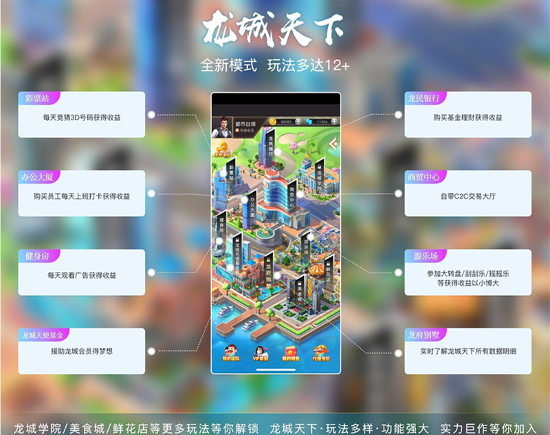 龙城天下,2024年5月5日首款大型app正式上线,12种玩法。0撸月赚200+。氪金收益全网天花板。