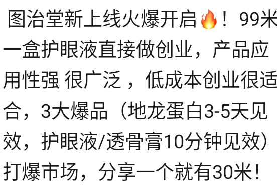 扫码注册,99买一盒护眼液,扶持红包30块,直接升店长权限!全是高质量健康产品!永久事业!