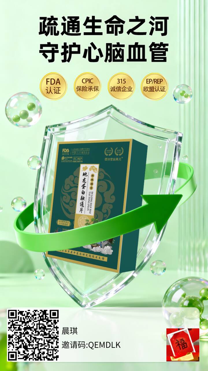 1️⃣图治堂地龙蛋白溶通片,靶向调理心脑血管疾病(人体隐形炸弹),服用5天支持医院测数据,万Yi市场!