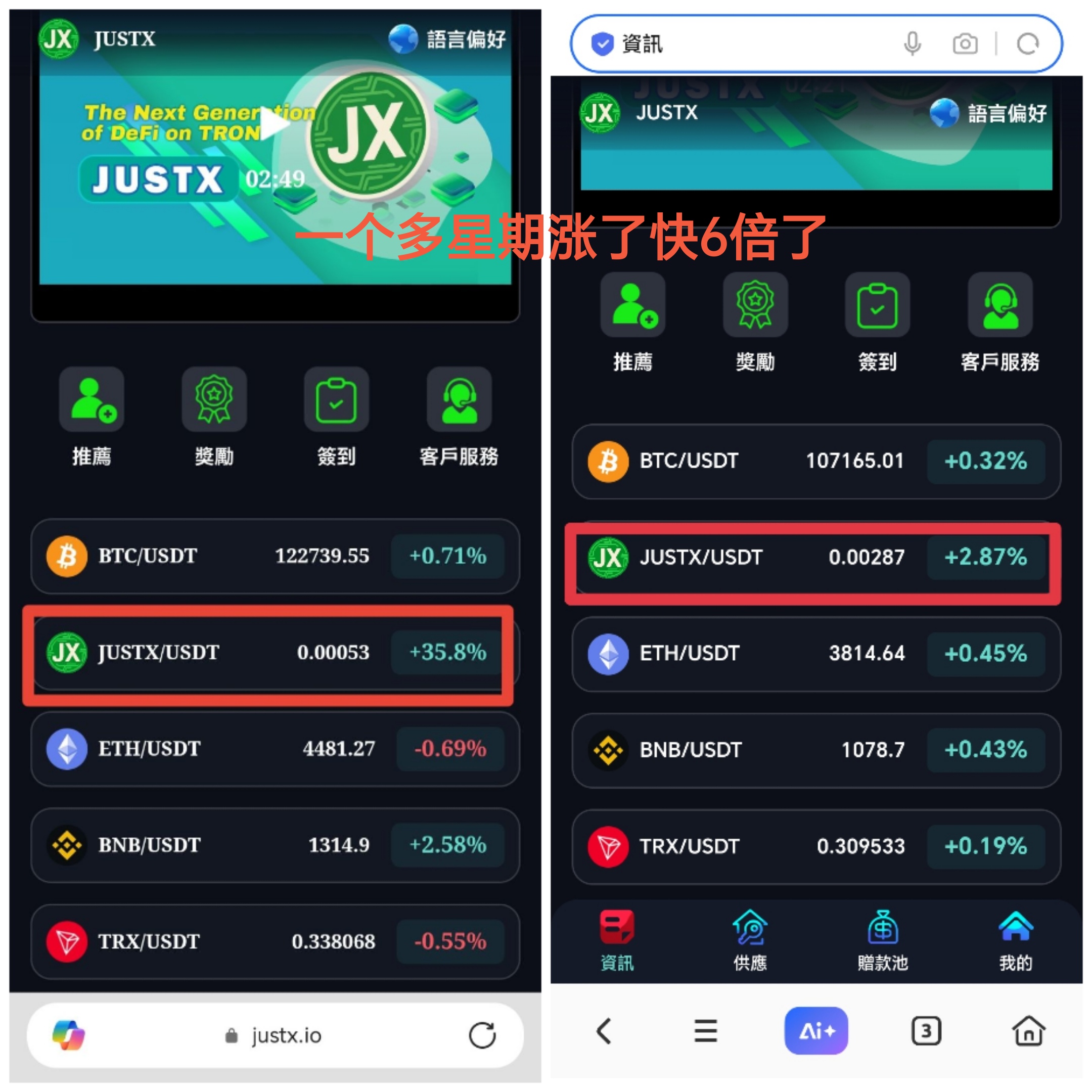JUSTX几天时间已经涨了6杯了,每天还在涨。有人说价格还是低,每天都在涨急什么,而且价格高了就没你什么事了,先撸。