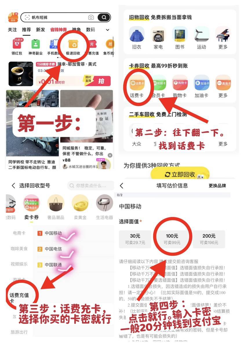 步骤简介:平台购卡85元一张,咸鱼回收99一张,一张赚差价15元左右,每人一天能搬50张,日总收入700➕