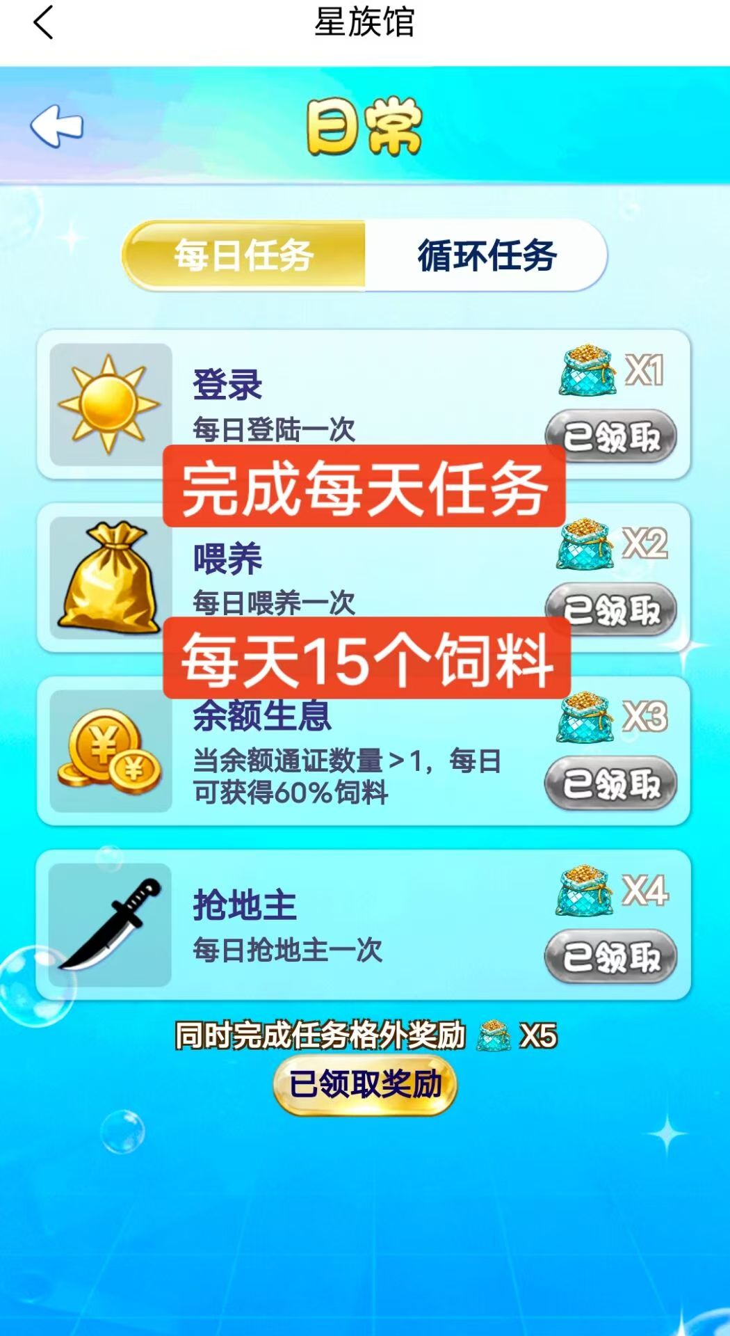 星族馆养鱼其实很简单,零撸。就是捕一条鱼,随机可以捕到价值1000到10000的鱼,然后每天做任务🉐饲料喂养产通证,铲出来的通证可以卖💰,市场80左右一个收,后期上几百一个,也可以继续捕鱼养鱼。