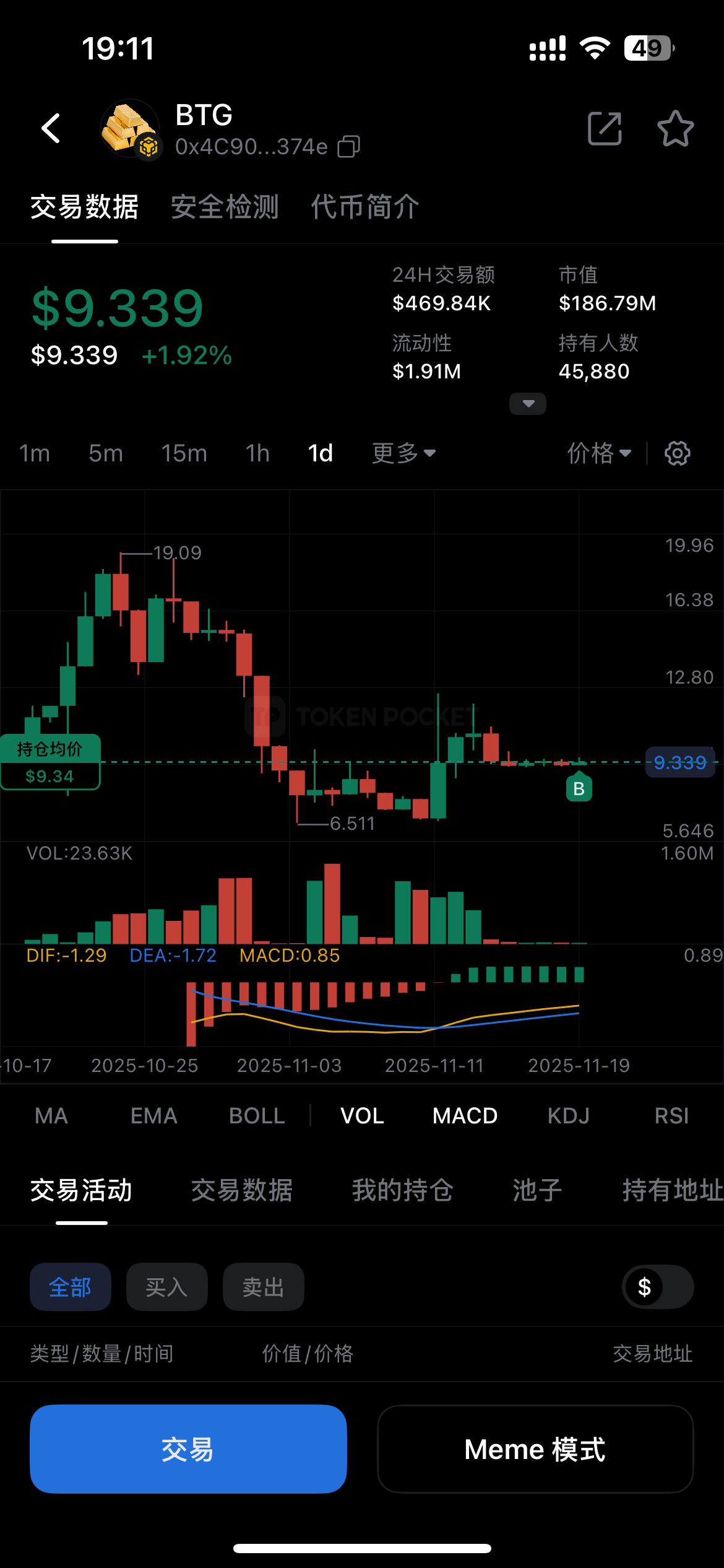 ✔️参与kong投,每天1次1刀 gas费得1000枚BTCM,1月份上线,BTG目前价格9.4u,达到到初级节点,每天分红4个BTG价值40u,立刻变现