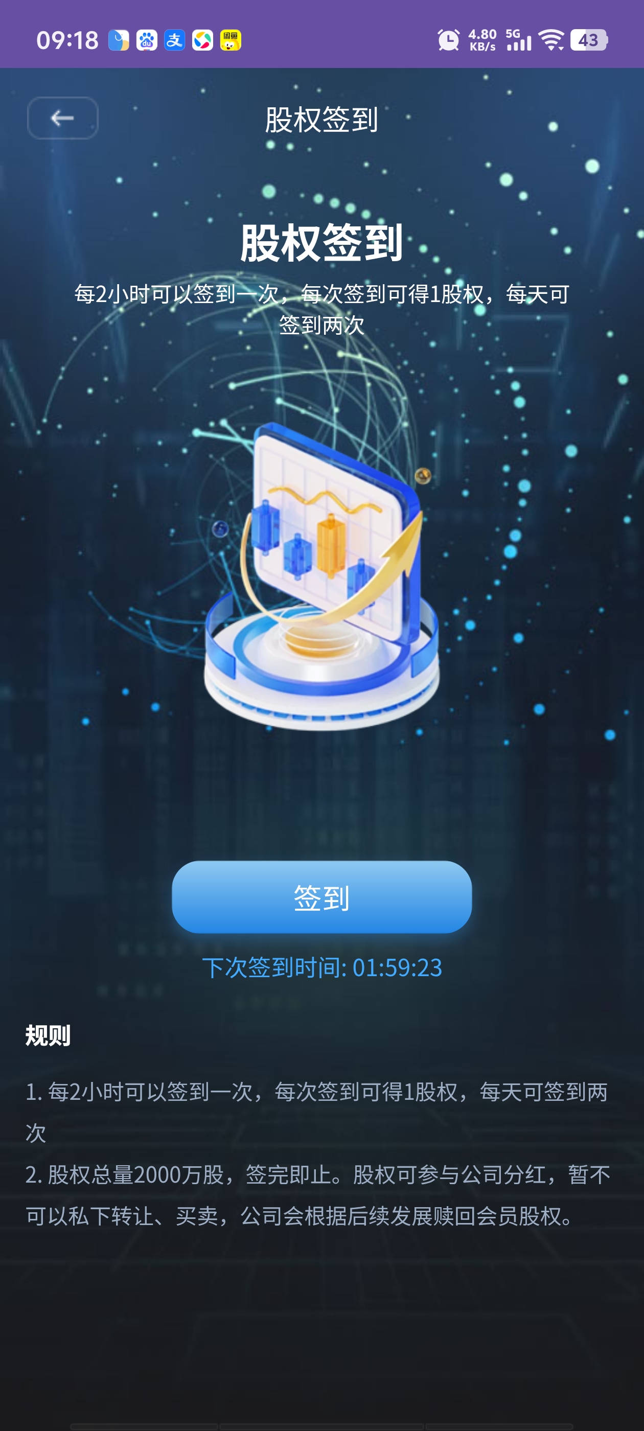 PARCTECH一天签到两次,不看广告,每天一刀和2股,满50股权就去释放,15 刀兑换成米 满一百就能提。不嫌少的去撸,每天15 块钱左右,不推广15 天提一次。直推8团队20人每天股权分红20+