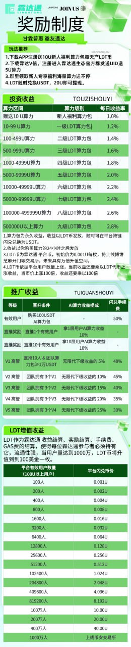 大家好,目前项目内测,内测期间一样可以赚钱,废话不多说,这个项目可零撸,可投资,看自己,如果有闲钱可少量投资购买算力包提示(购买算力包填写多少就充多少不要多也不要少,比如输入100就要转100不要转101或者99)不投资就复投每天签到,项目注册新人都会送一个永久算力包,签到每天也有钱拿,不用看任何广告,注册非常简单,填写手机号设置好密MA就行,然后设置好到账的账户,如果你是团队长会赚的更多,这个项目不是圈子,说句大实话不可能让你bao富,但是每个月赚个万把块应该是可以的,零撸玩家也能赚个千把块钱,适合所有人群!如果有什么不懂的就在群里问,群主看到会解答!