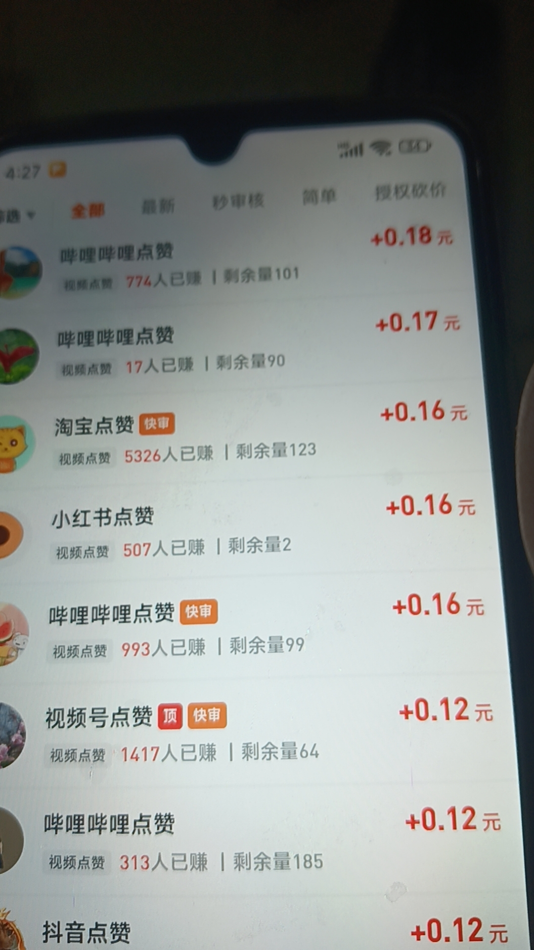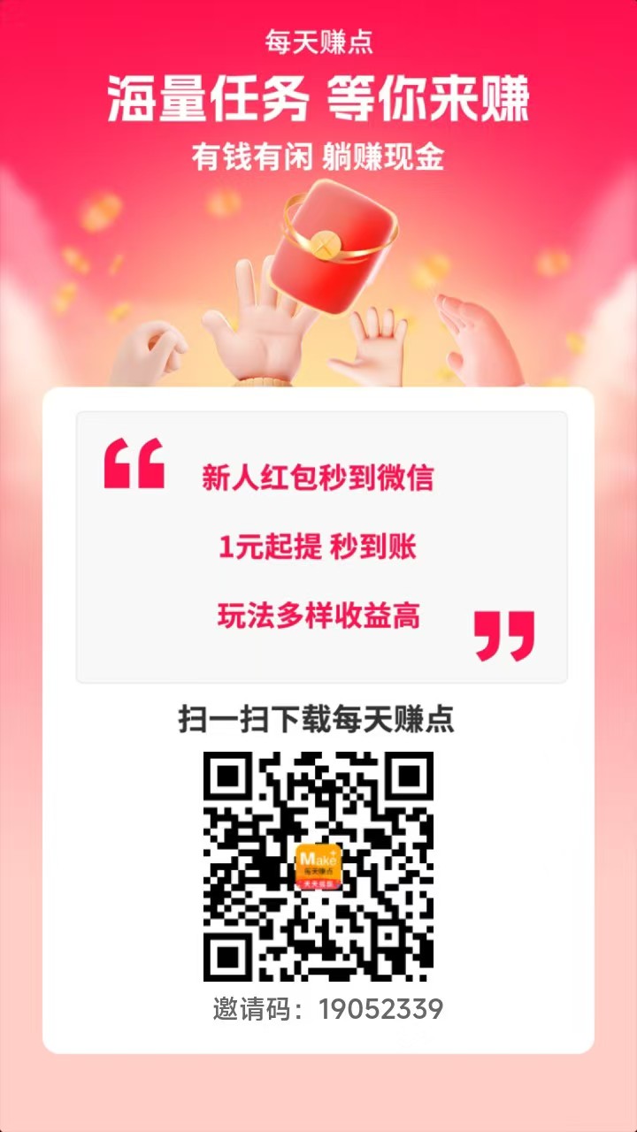 每天赚点:主营业务,给各大短视频平台点赞、浏览、关注,非常适合零撸用户,点点赞一天下来可以薅几块十几块