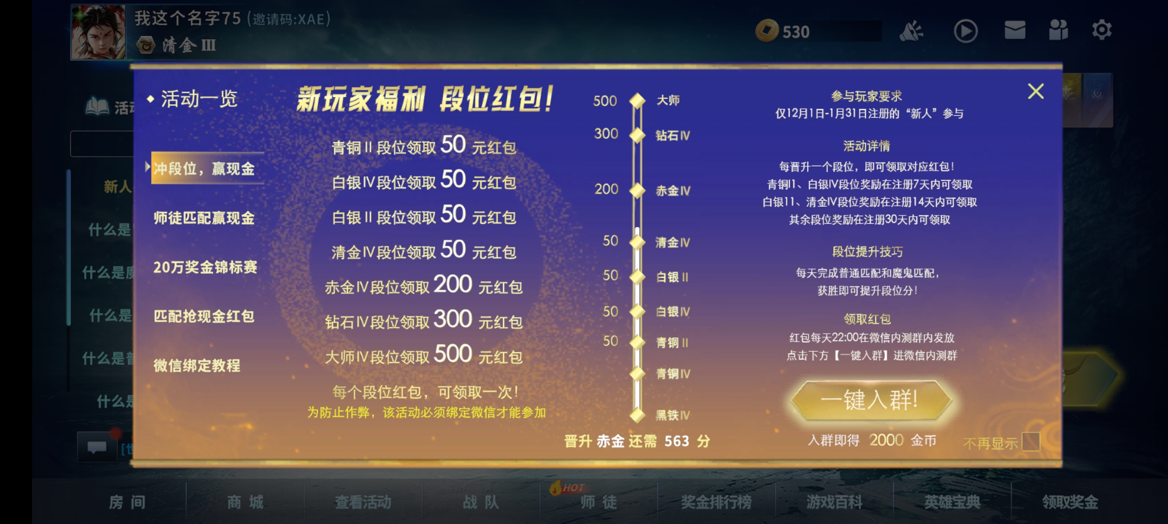 有不懂的可以问我,达到段位师徒奖励平分50,可以带你上段位。