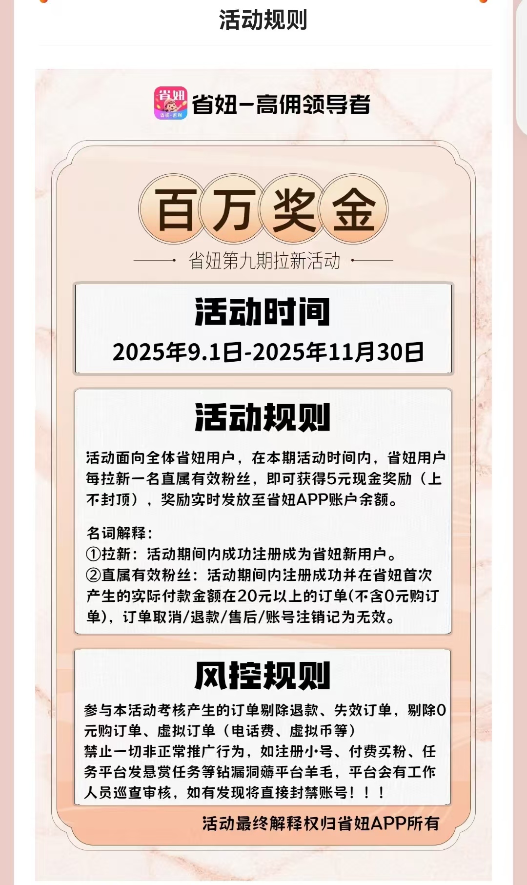 值得一提的是,省妞APP不仅能“自购省钱”,还能“分享赚钱”,零门槛、零投入,适合所有人当作副*业增收,尤其适合学生党、宝妈、上班族。用户通过省妞APP分享商品链接、邀请好友注册,就能获得丰厚的佣金奖励:每邀请1个好友用官方邀请码55555注册,并完成首单,就能直接拿到5元钱奖励;好友后续每次通过省妞下单购物,你还能获得他订单返利的5%-10%,好友再邀请下级,你还能拿到团队总佣金的5%,无限代收益,躺着就能赚被动收入。有用户分享,仅靠分享邀请码、组建推广团队,每月被动收入就能达到上千元,甚至有学生党靠这招,实现了学费、生活费自理。