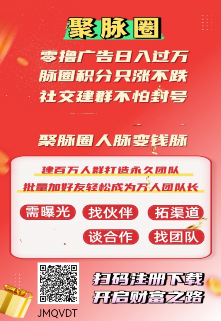 👉聚脉圈0撸广告➕社交➕发广告三合一平台
