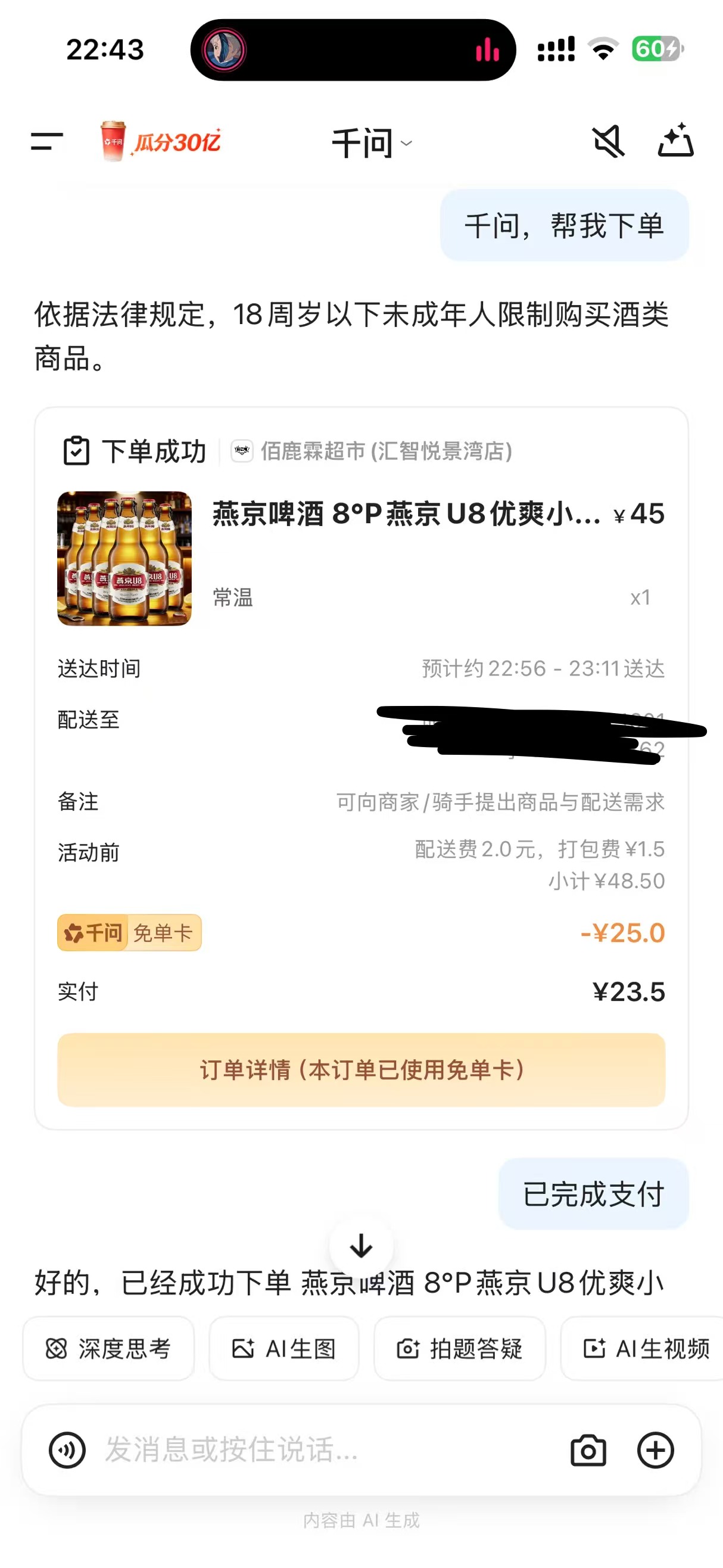 下载千问用千问扫码领25优惠卷 点外卖奶茶 超市 啥都能用