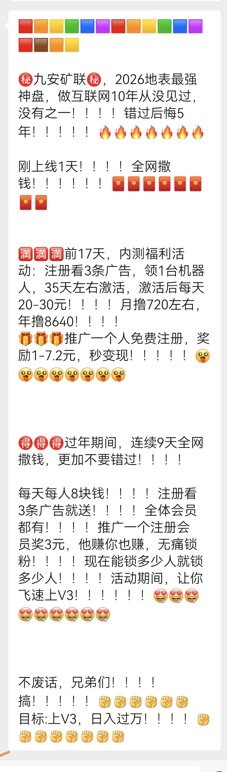 免费领旷机,日赚20-30,K主分洪90左右 2026年02月11日 103 lkjhny 发消息 九安K联招直推旷主,年底七天活动日賺100左右,*到底,賺了算你的,亏了算我的,有兴趣的加我Q。2652561668 关注首码圈,掌握最新的福利活动 对本文有疑问,请注册登录后,发消息,联系作者! 交流QQ群:1147670845,交流首码app:首推啦 文章来源: 17789216861 本文地址: https://shoumaquan.com/post/86663.html