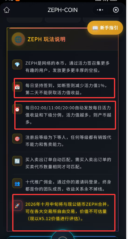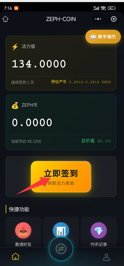 每天签到增加活力值(算力)产ZEPHB
