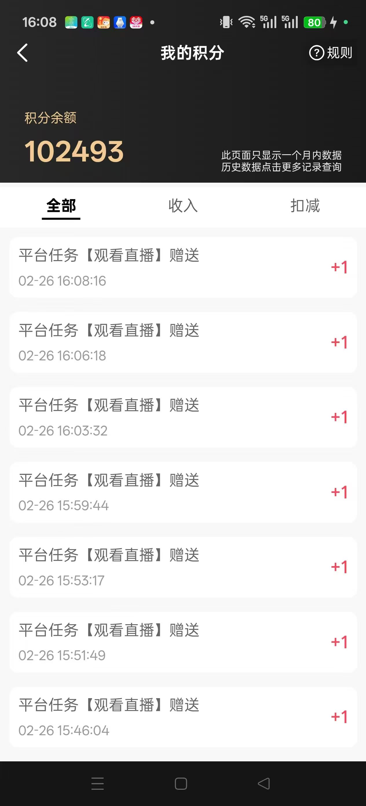 看直播送积分50,分享人送积分50,一分值一元。
