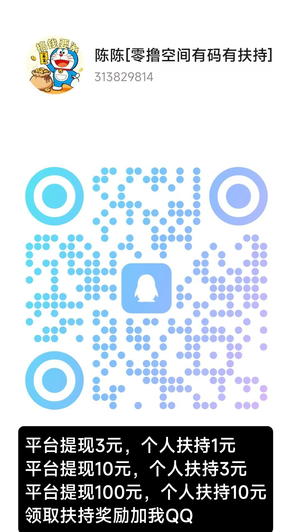 平台体现10元,个人扶持3元