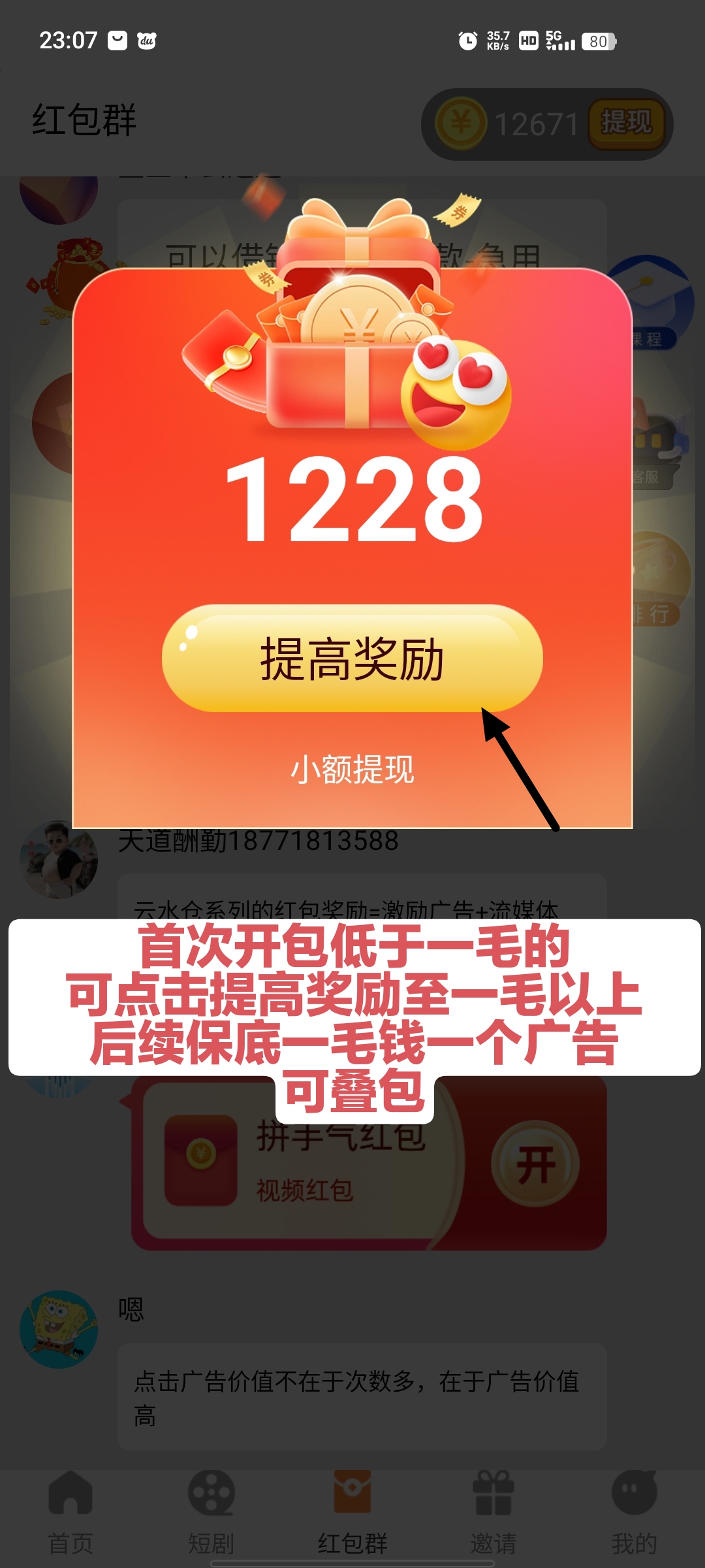 【云水仓】看广告赚米,平台保底一毛钱一个广告 2026年04月04日 104 旭日东升 发消息 玩法介绍: 云水仓是一个看广告赚米的APP 全新叠包模式,在线时间越长收溢越高!平台保底一毛钱一个广告,可无限叠加收溢。 平台都是商业广告,价值非常高 一圆起提取,秒到账!!! 邀请口令:78403 QQ:1765442917 对本文有疑问,请注册登录后,发消息,联系作者! 交流QQ群:1147670845,交流首码app:首推啦 文章来源: 旭日东升 本文地址: https://www.shoumaquan.com/post/87381.html