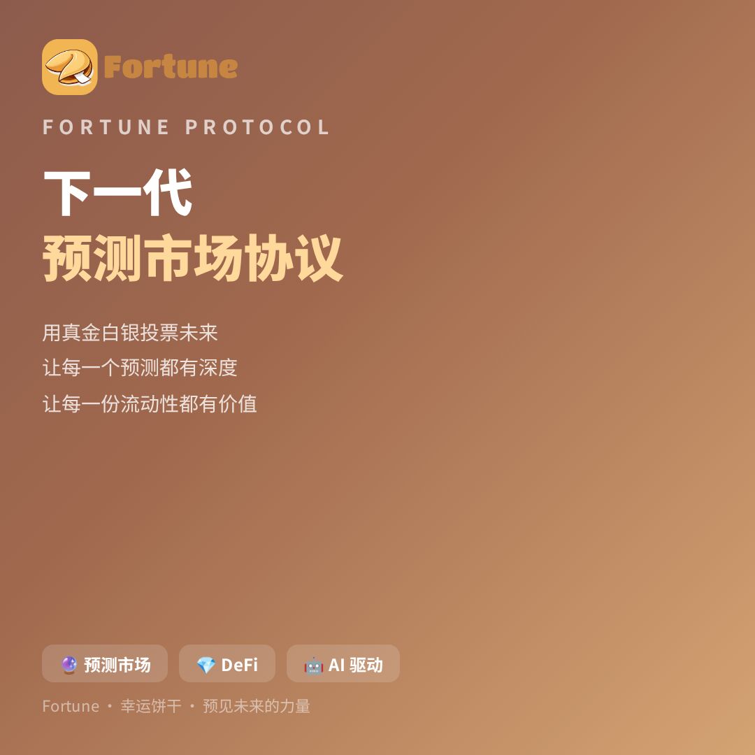 Web3玩家速冲!新一代金融协议幸运协议(Fortune Protocol) 重磅来袭,聚焦预测市场流动性基础设施建设,直击行业流动性碎片化、定价低效、门槛过高三大痛点,打造集预测市场、流动性引擎、质押借贷、AI赋能于一体的完整生态版图,4月初正式上线测试,交互即领kong投,双重收益模式开启财富新机遇,错过拍大腿!