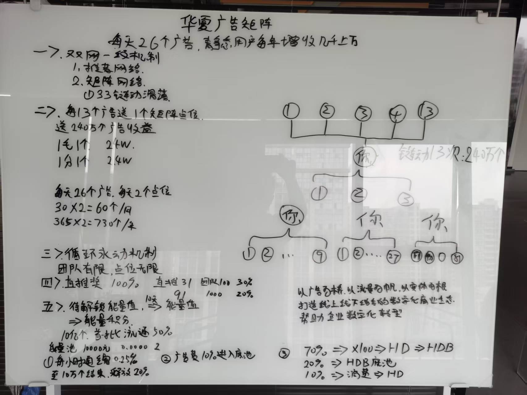 二、每看13个广告送1个矩阵点位,送140万个产告收益
