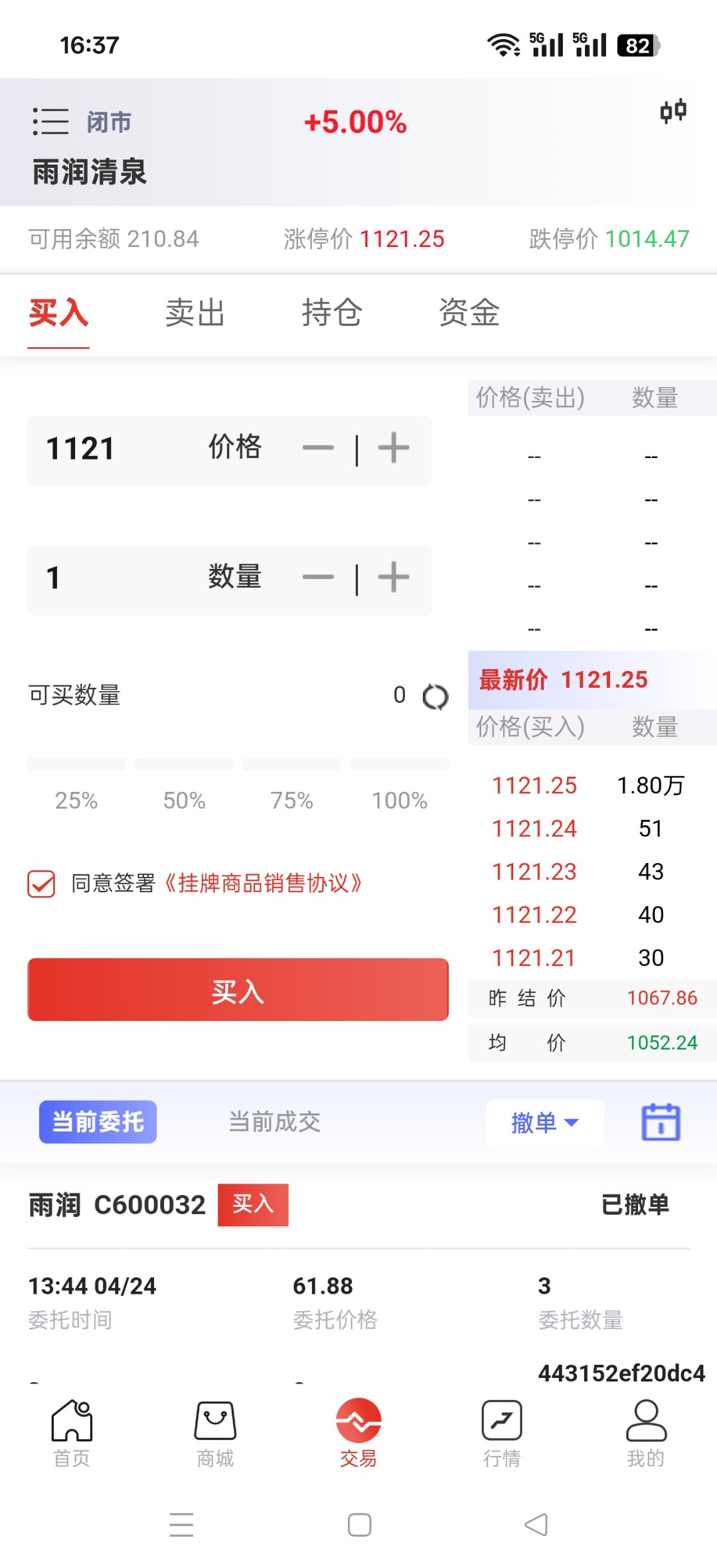 四、茶数交易:每天开市可以进行买卖(低买高卖不要追涨杀跌,我只做了雨润和雨润清泉)