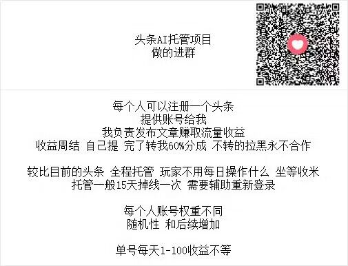 较比目前的头条 全程托管 玩家不用每日操作什么 坐等收米