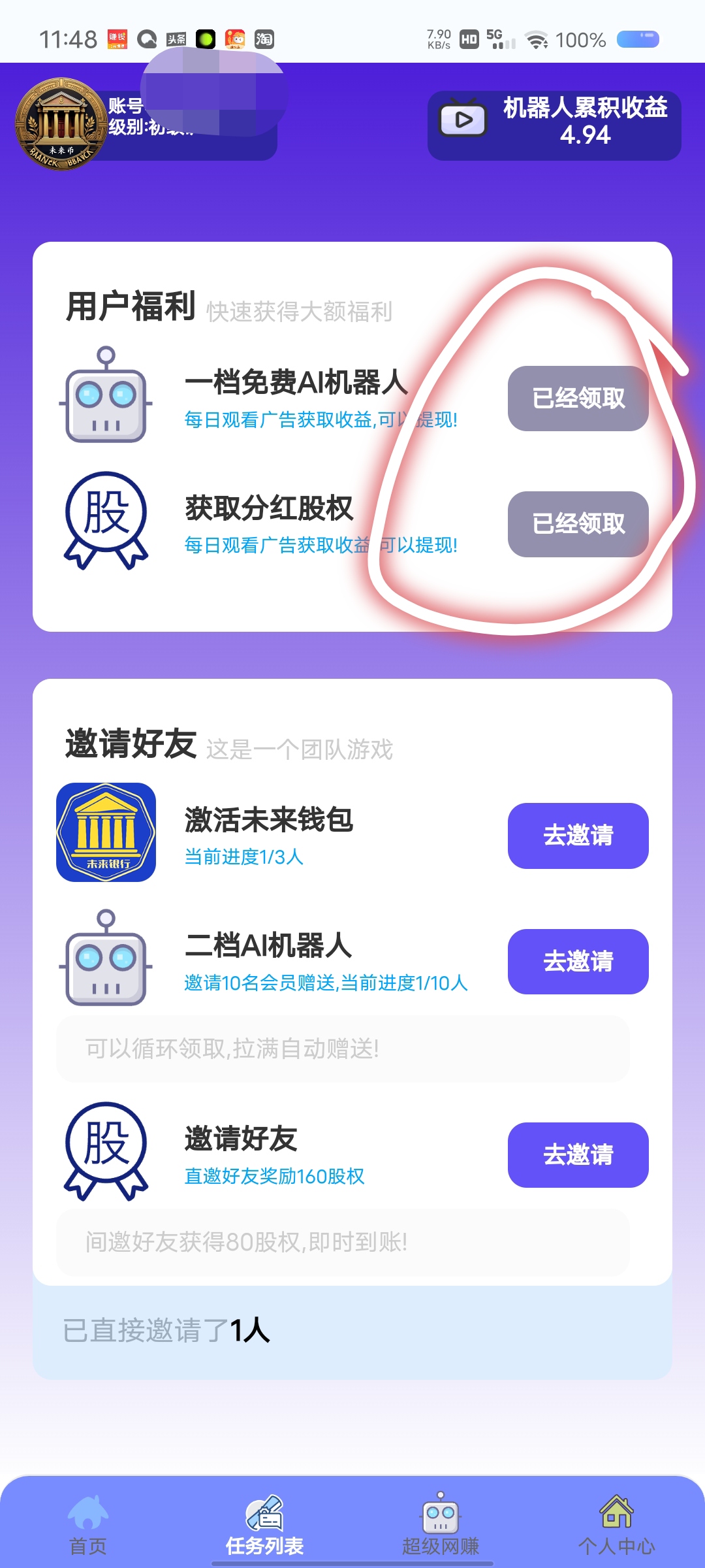 机器人会自动在后台刷广告、点赞、观看视频等