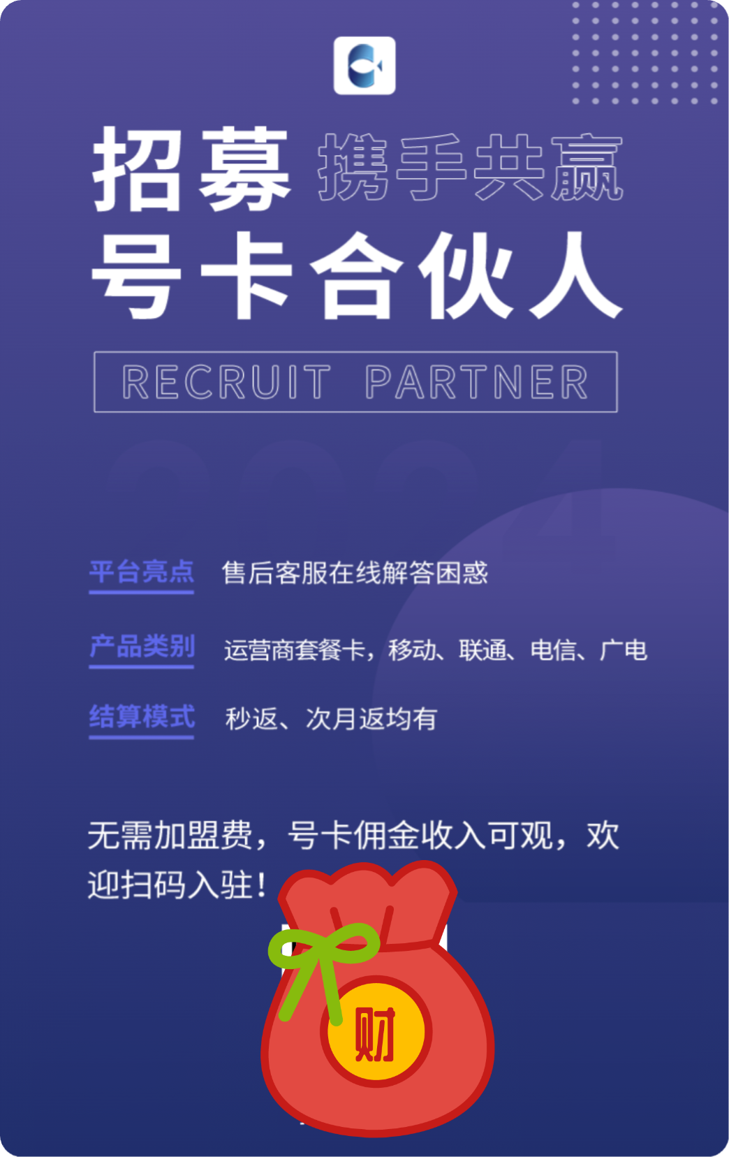 秒返、次月返、长期返不同类型拿佣金,【一张卡佣金在80-300元左右】,运营商拉出客户在线数据、进行结算核对!安全稳定!