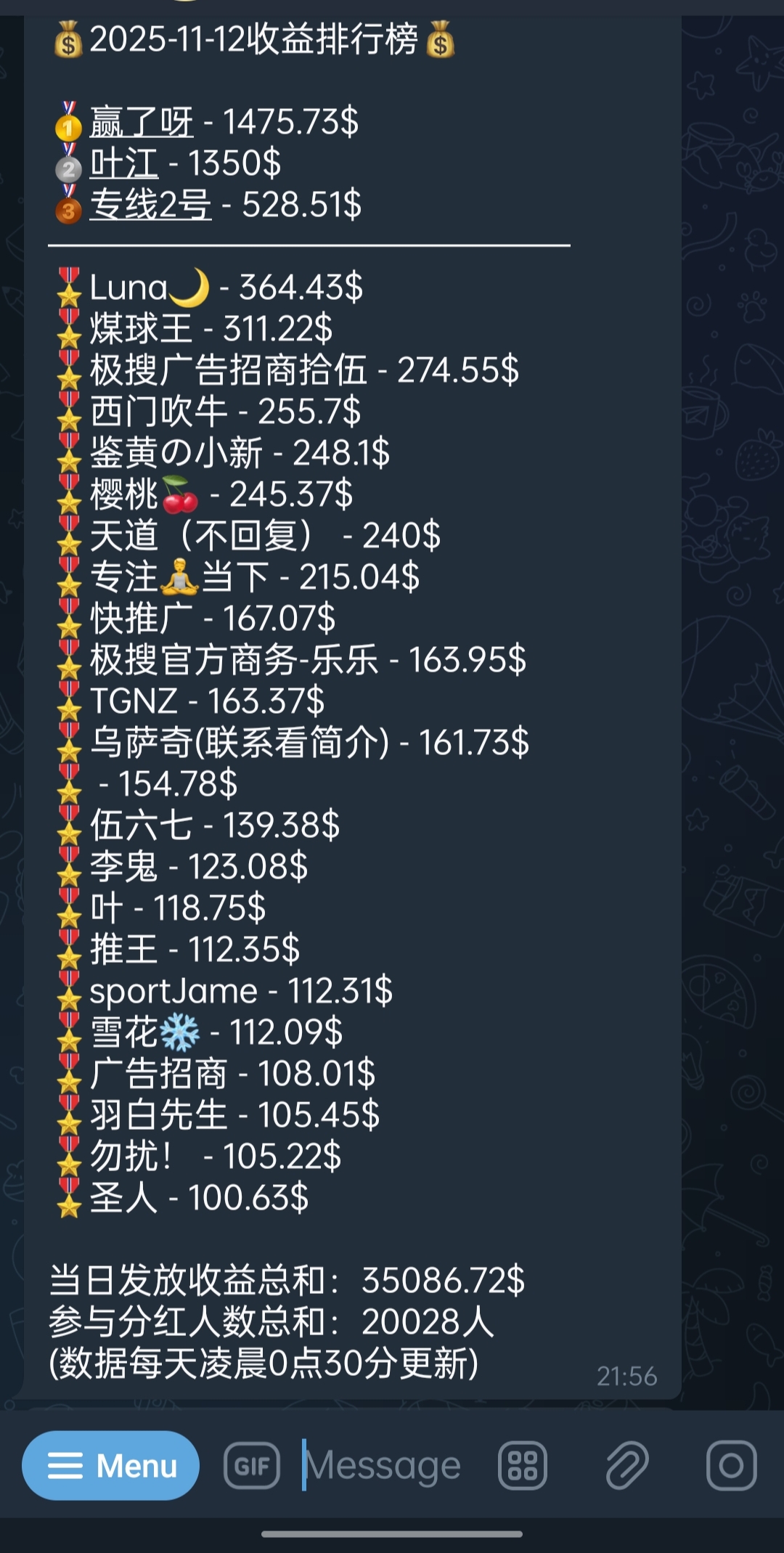 邀请方式二:把极搜机器人邀请联系方式组/频道,就会收到一条推送,然后点击在“此群组/频道分享极搜”。机器人就会定时向此群组/频道推送拉新文案。新用户点此文案下方按钮进入极搜,你会获得0.3$拉新奖励