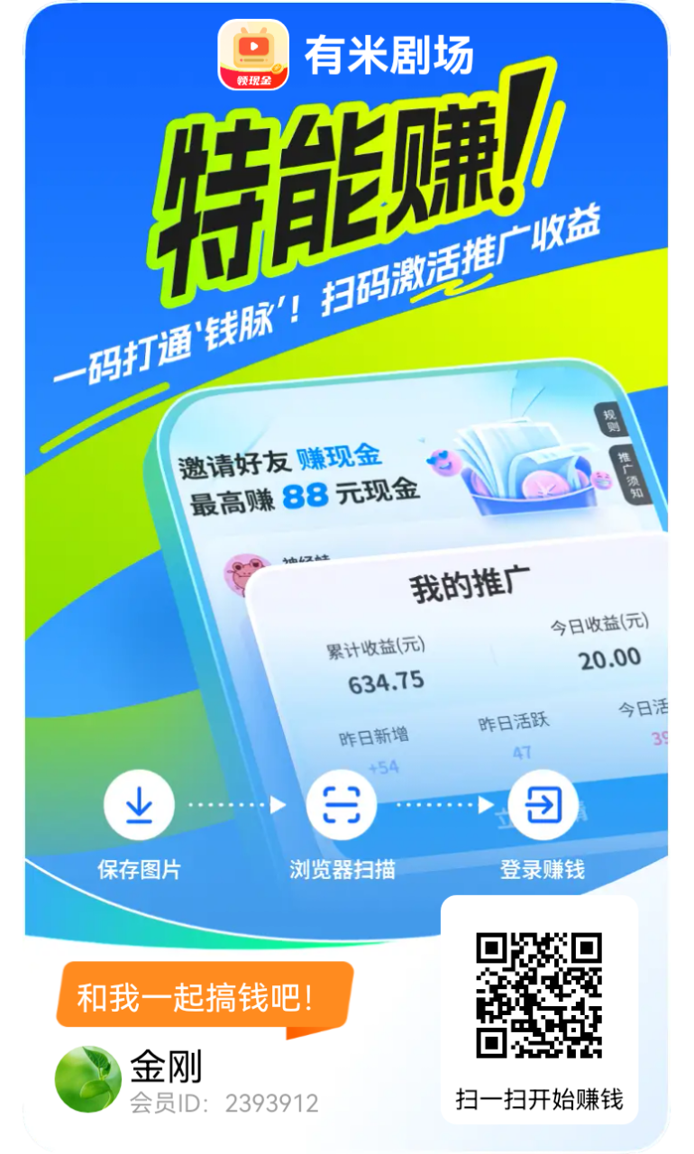有米剧场,短剧看广长久零撸模式,权重高的金B自动涨,无须操作,跳集无限撸广告,看了就是米,直接体现,50W顶包,10000金B1米,也可以一直攒着,想多少领就多少领满1提,领了园圈又是几千金B,团队50自动团长模式,群里送不养机教层,注册下载地址