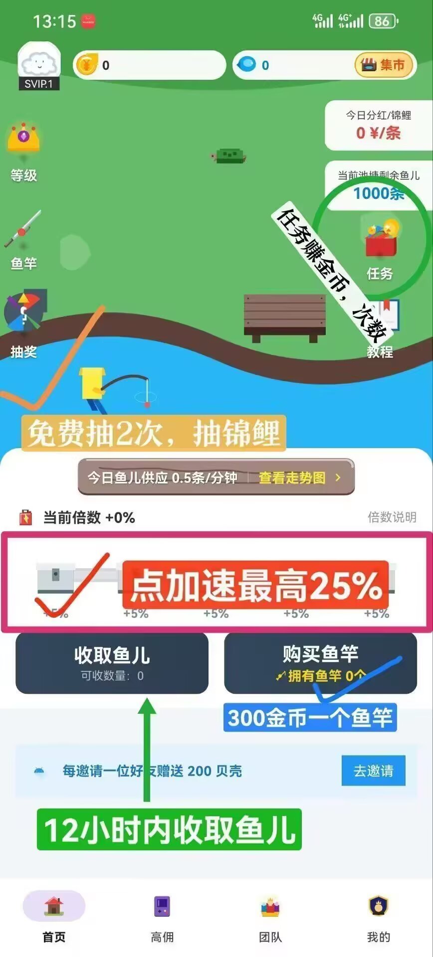 ⑤在钓鱼底下有个加速钓鱼,5个广告,可获取最好%25的速率