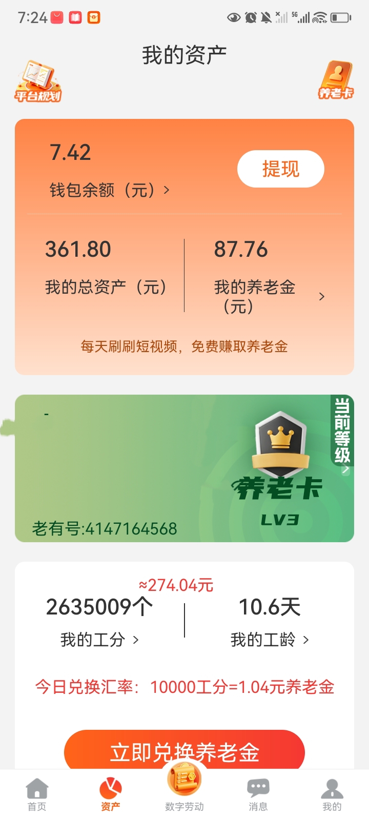 每天完成基础任务就有一个工龄,工龄是分养老金的依据。