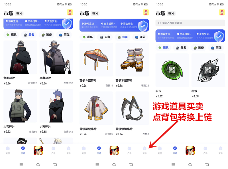 三、根据游戏导向玩游戏,铲出道具可转换数字资源上链到交易市场买卖
