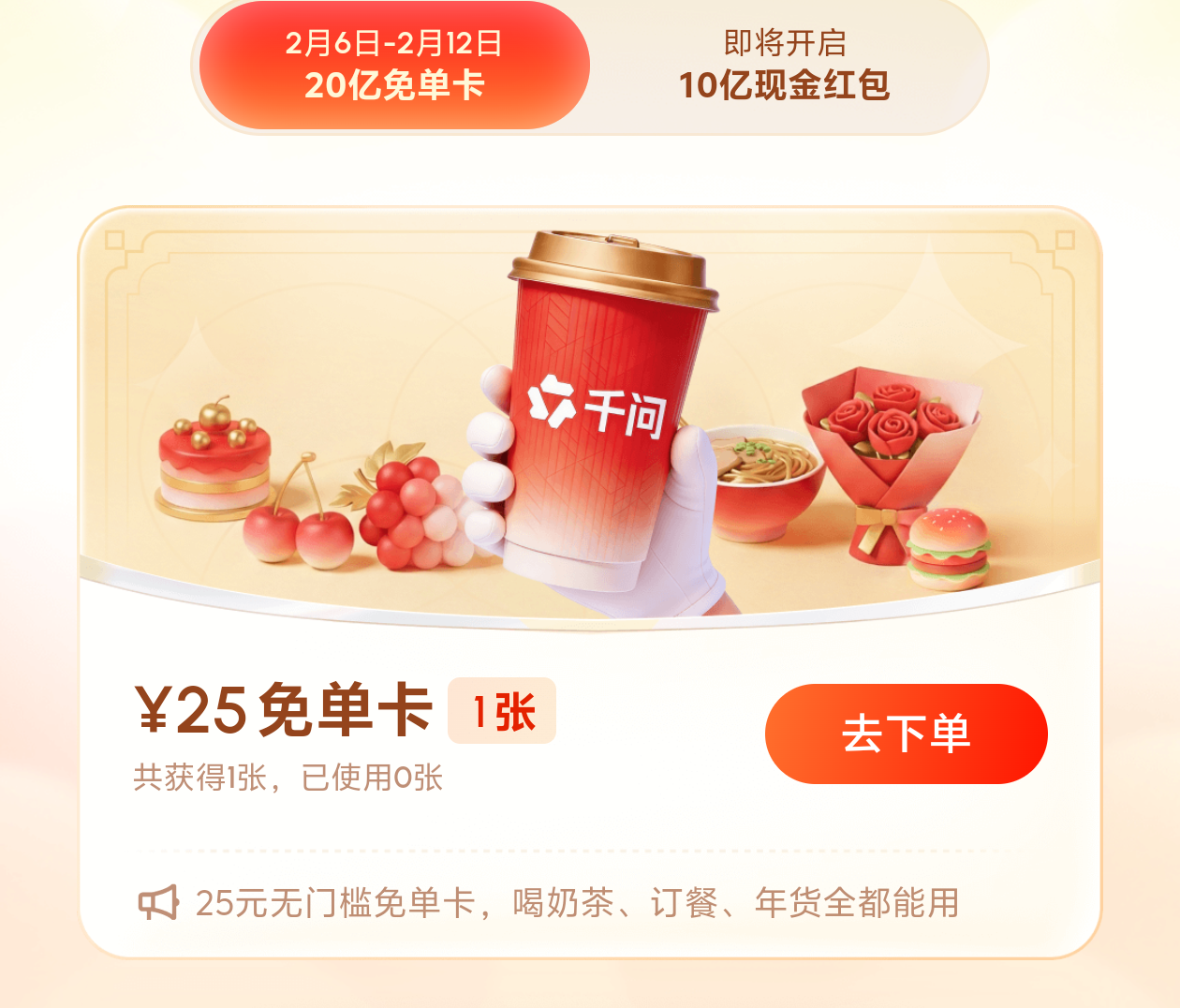 白嫖25元的无门槛券,咸鱼可以出给别人免费吃外卖喝奶茶的活动又来