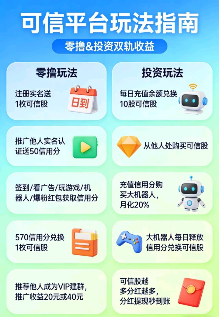 1️⃣速度上车,注册简单实铭送1枚可信股+一台机器人