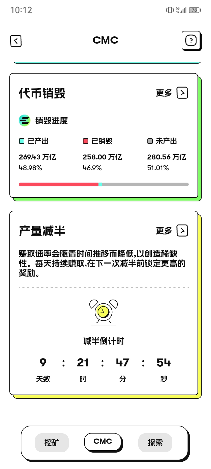 简单的说下玩法吧 CEEX就是通过购买cmc 然后销毁获得算力 算力越高的话 每天挖得cmc越多