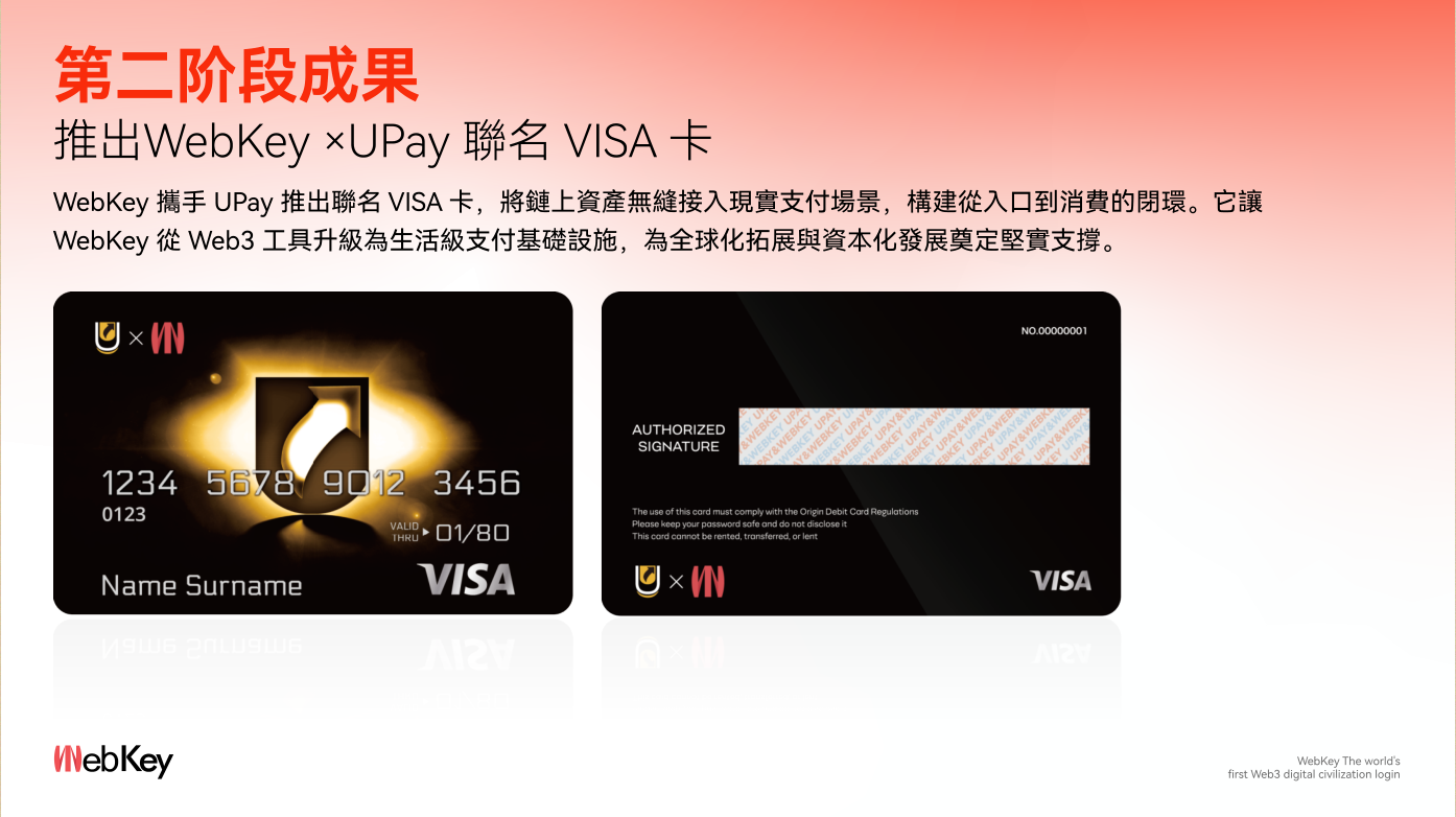 · Upay联名VISA卡:链上资源无缝接入现实支*付,支持V信、支*付宝、线下刷卡,全球通用,真正实现“从入口到消费”的闭环