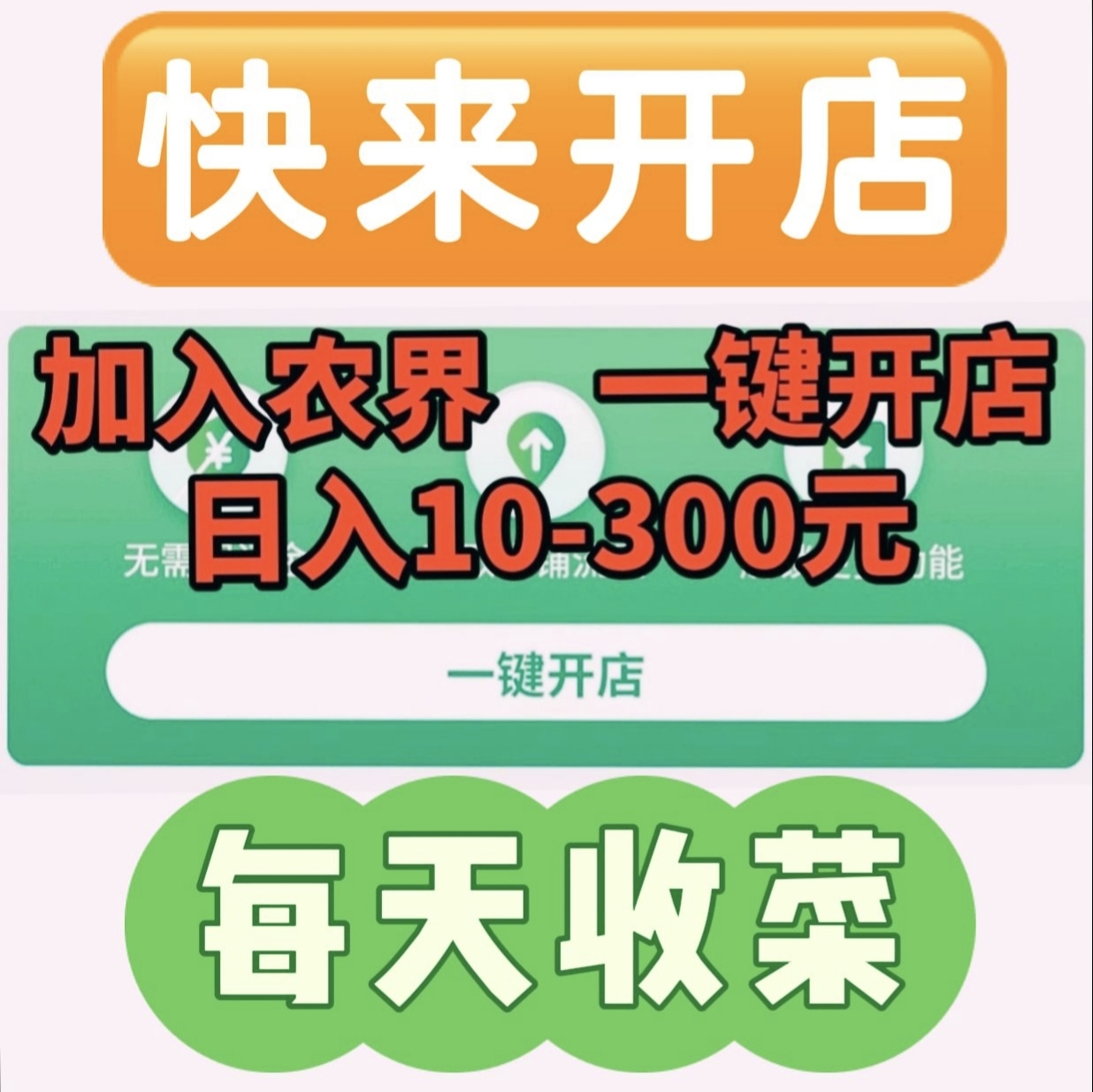 农界,每天一键开店,收入30-300元,自己就能做老板,店铺可以进货蔬菜,鸡蛋,肉类,提升级别,每天的收益都不一样!