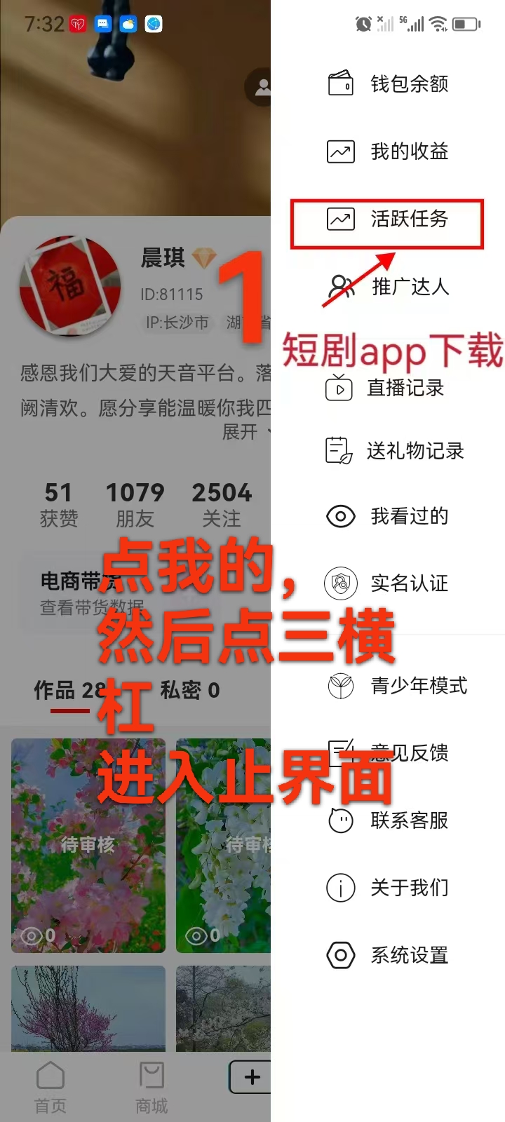 点首页,点左上角三横,点开商城积分,能看到自己收益!