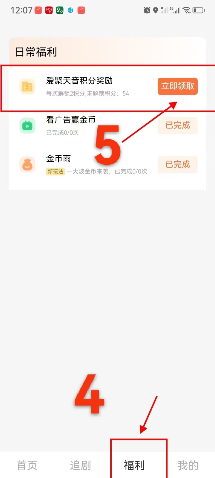 领取积分点我的,点右上角三横杠,点活跃度,然后按操作就行!
