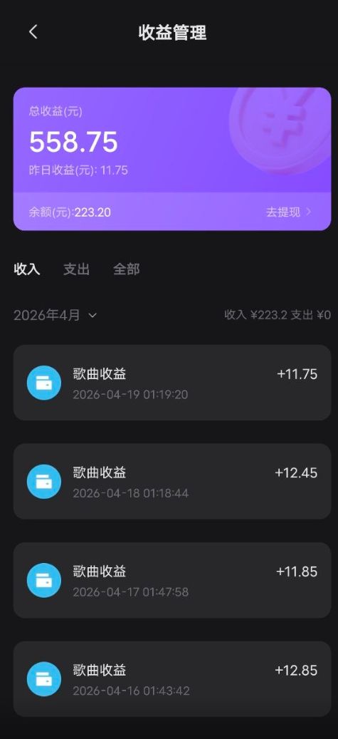 2026年最火爆首码**音音乐乐火爆全网,会员每天收入从十几到几百!来创作一首歌送给你最爱的她/他吧