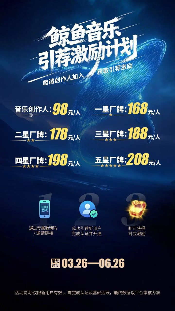 4,平台额外奖励:咱们平台会根据你做歌的活跃度、贡献值,给你额外的钱或者流量奖励,多做多得。