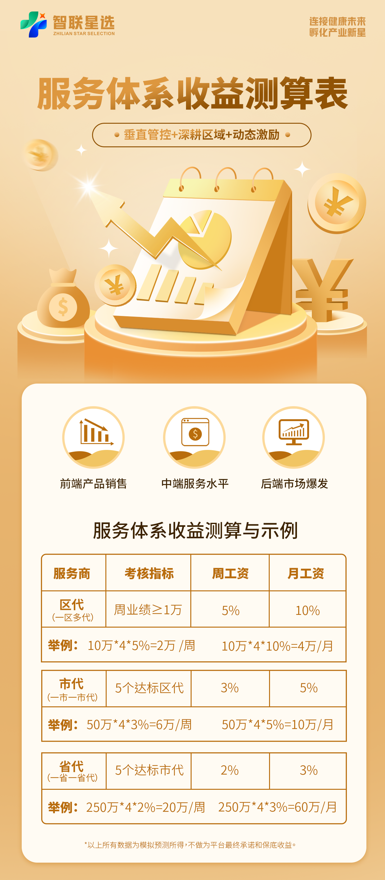 在智联星选的视野中,健康不仅是每个人的生活追求,更是一个充满活力与希望的广阔产业。我们不仅提供优质的健康产品与服务,更构建一个让每个人都能参与其中、获得成长、实现价值的生态系统。从拥有一份健康开始,到拥有一份值得奋斗的事业,未来智联星选将与所有同行者一起,连接健康未来,孵化产业新星。
