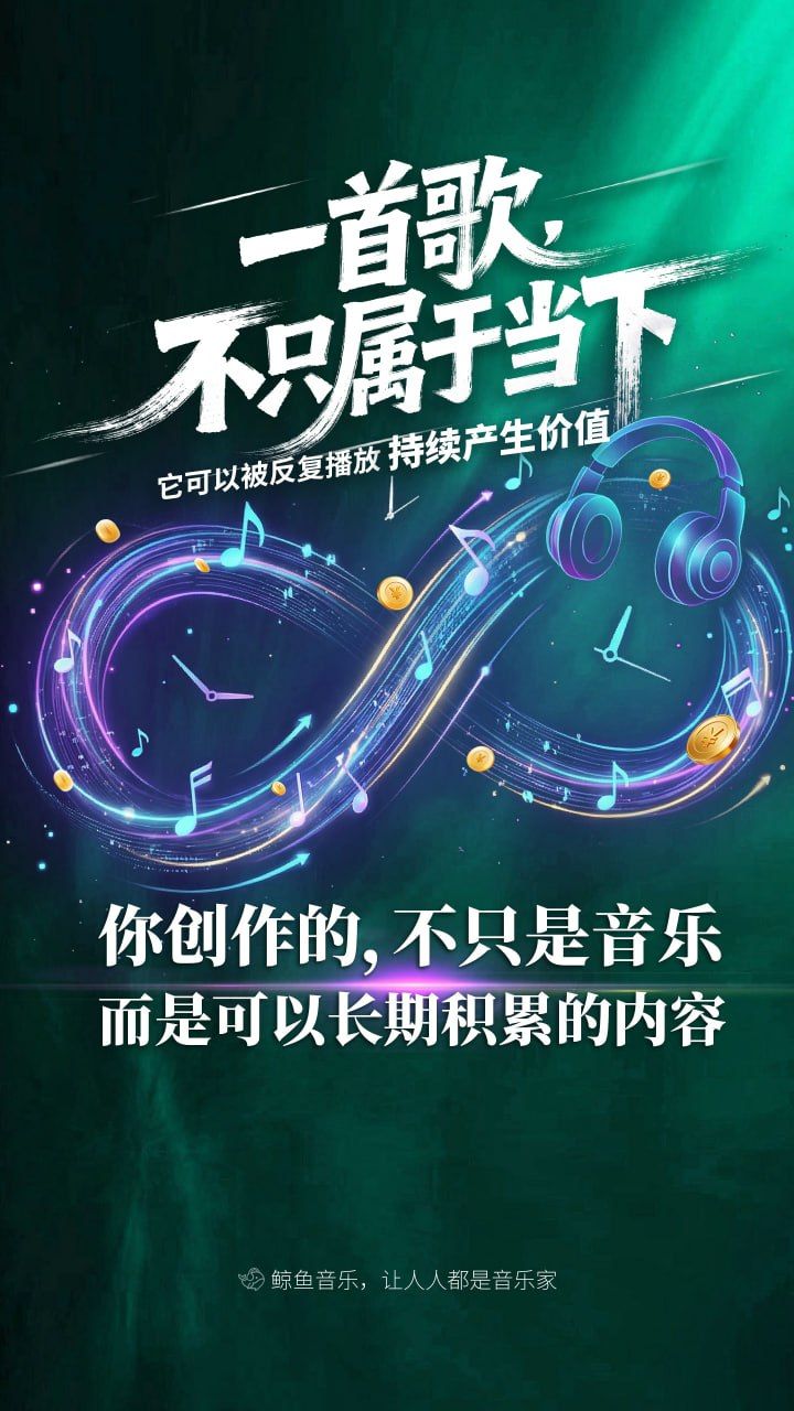 1:**音乐,把创作-分发-使用-商业变现的全线路全打通了,不用你自己找渠道、跑推 广,做出来的歌版权完全归你!