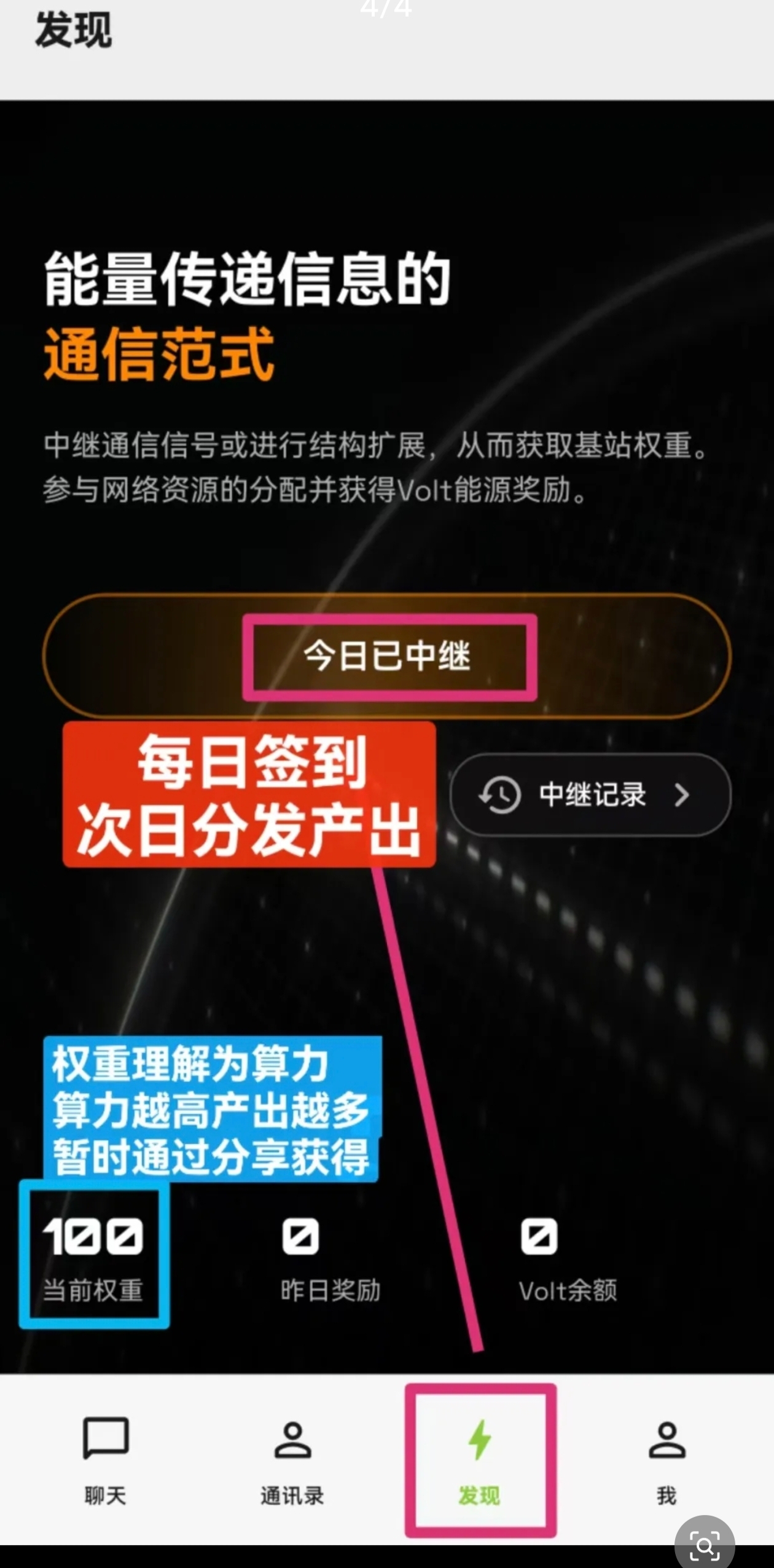 第五步:每日任务点击⚡️界面的中继器即可