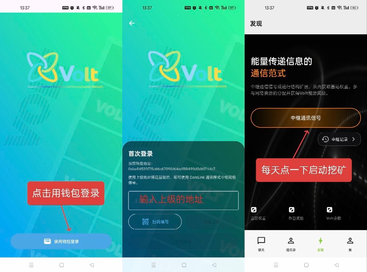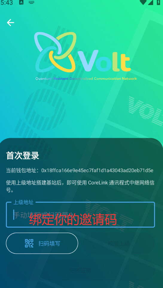 点我,可以看到邀请好友,复制自己的邀请地址,新伙伴注册需要提前复制邀请地址!注意事项:同IP网络地址最多创建3个号,也包括同一台手机,自己的Q包地址就是邀请地址,绑定上级地址有个人机验证需要开梯子才能验证成功