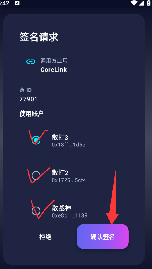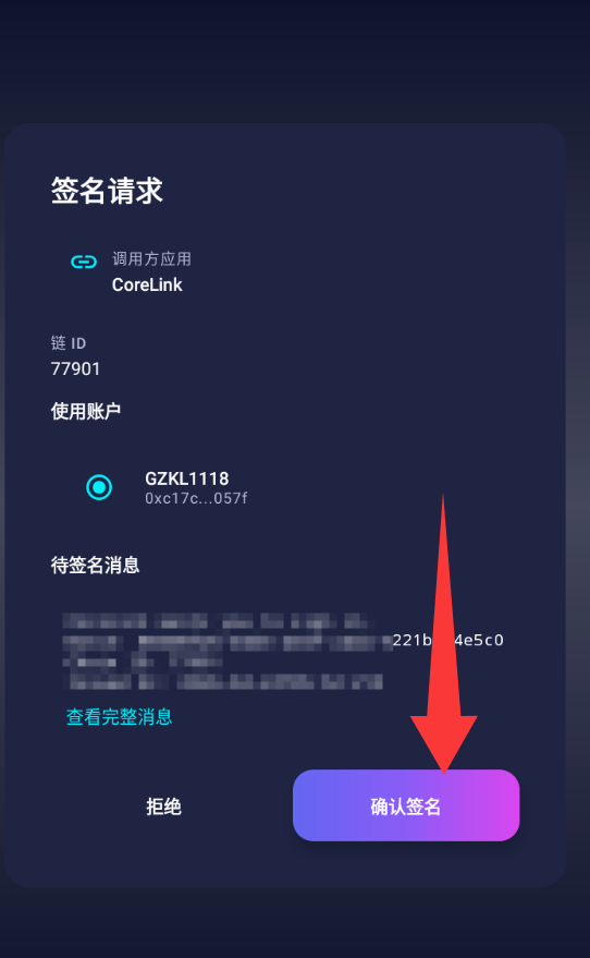 ③.第三步:点击使用Q包地址登录,会自动跳转corex钱包,然后链接自己Q包地址,完成签名即可。