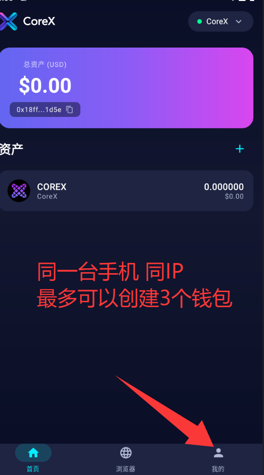 ①.第一步:需要先下载corex钱包 并创建一个corex链Q包地址
