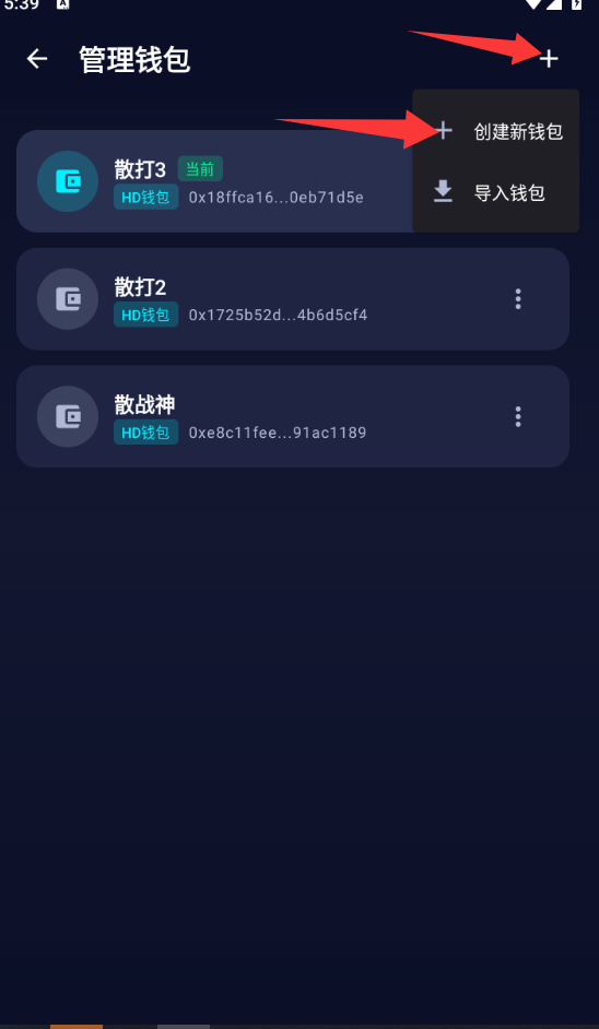 先打开前包APP创建3个包,保存好助记词