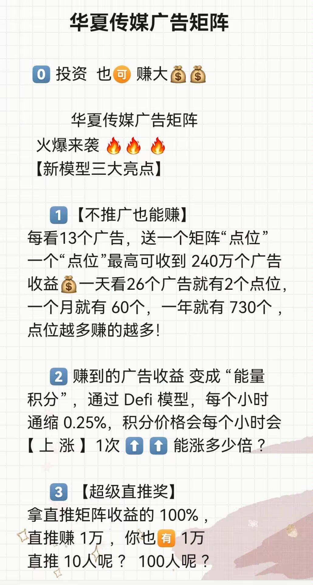 二、每看13个广告送1个矩阵点位,送140万个产告收益