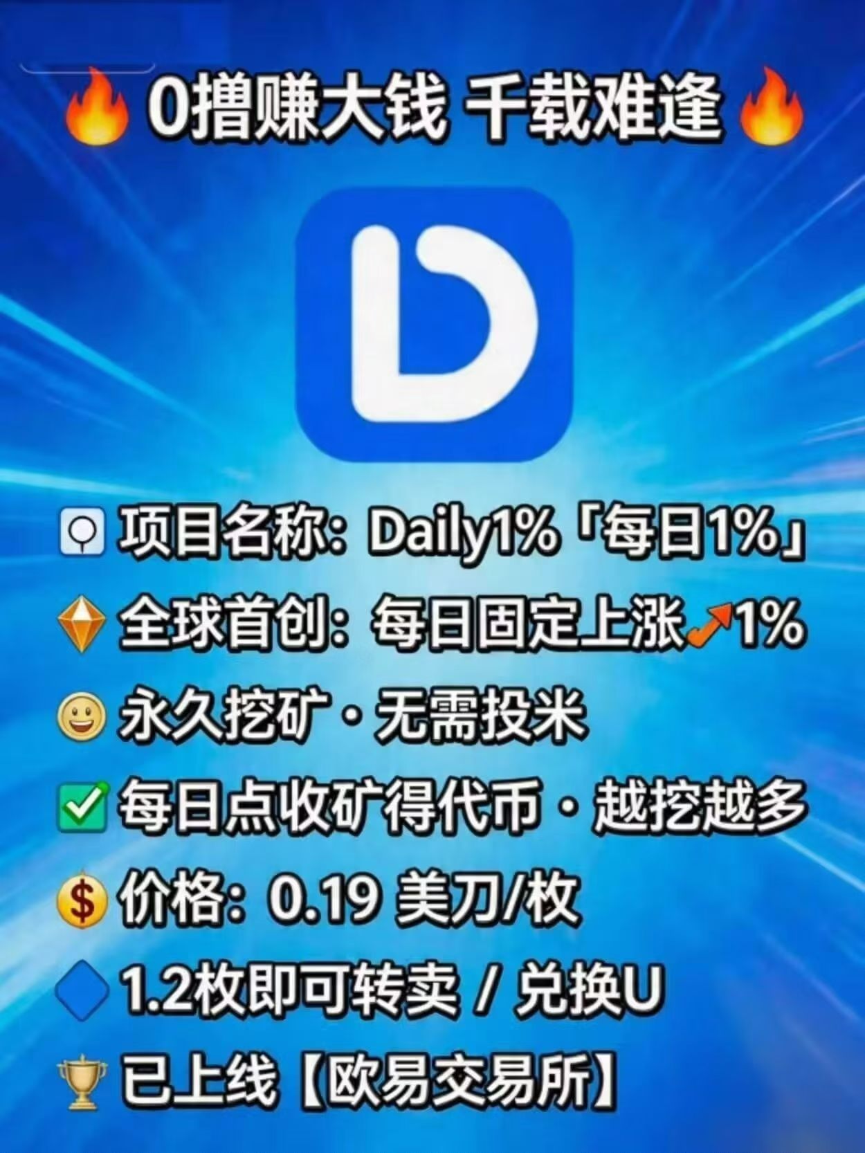 daily国际,去中心化爬楼,每天简单一秒爬楼,零撸,零撸,零撸,价格每日上涨1%,可以互转,可以换U转O易交以所